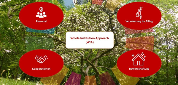 Wir setzen und als Team mit Themen rund um BNE auseinander, arbeiten ressourcenschonend und berücksichtigen bei der Bewirtschaftung des Hauses Nachhaltigkeitskriterien.
