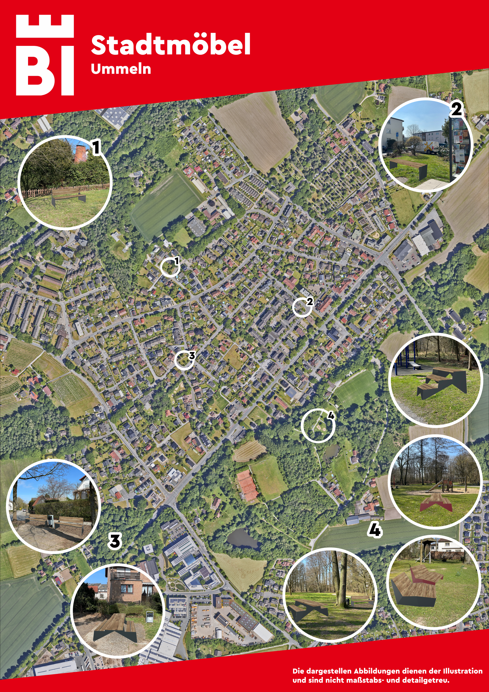 Damit die Möbel in den Stadtteilen Jöllenbeck, Hillegossen (Headerbild) und Ummeln auch an die richtigen Plätze kommen, wurde die Einschätzung der Engagierten vor Ort – als Expert*innen ihres Stadtteils – eingeholt. In Stadtteilwerkstätten in den drei Bielefelder Ortsteilen im März 2025 konnten sich Vertreter*innen von lokalen Institutionen wie Vereinen, Schulen, Kitas, Politik oder Verwaltung über Orte, Funktionen, Formen und Farbgebung austauschen.