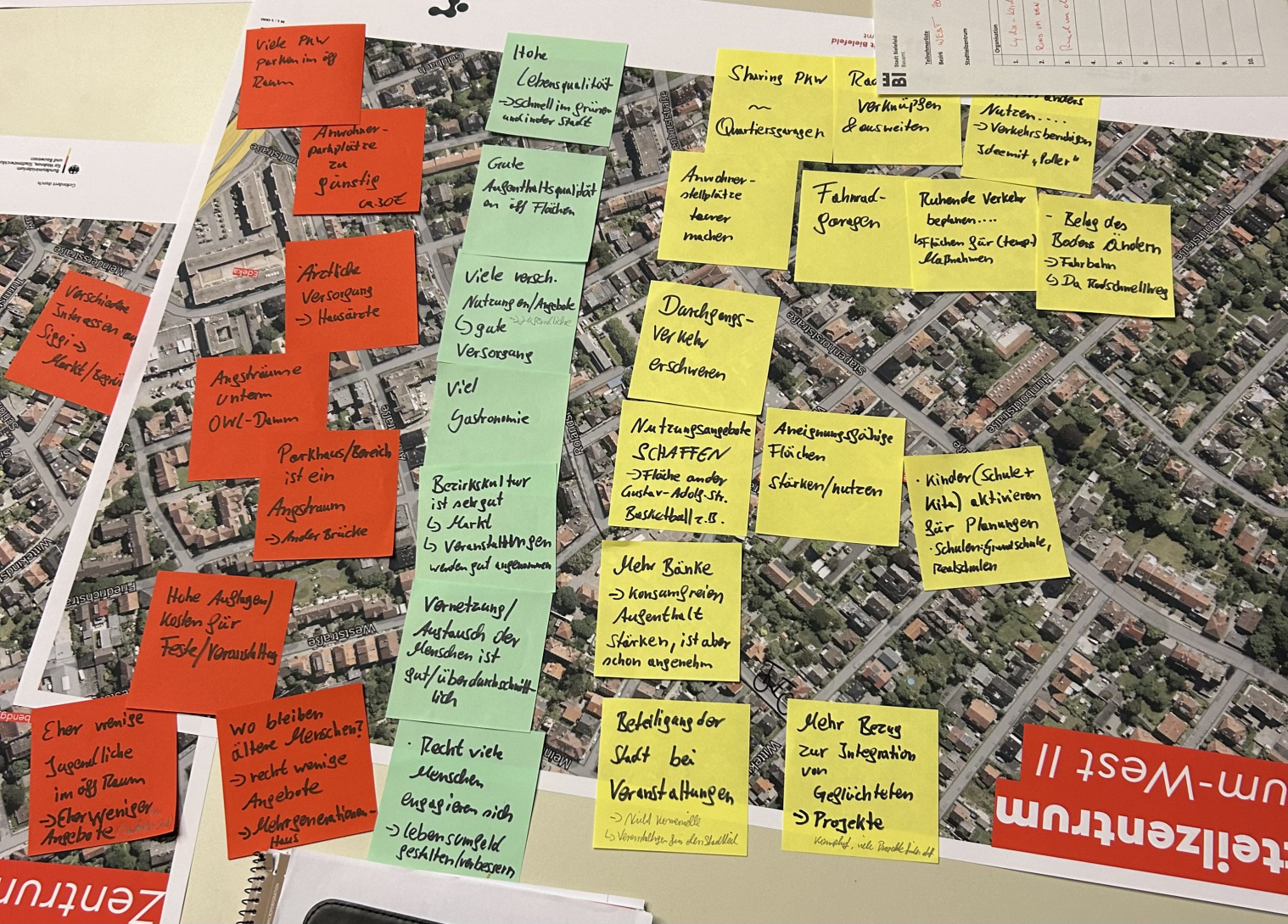 - Schlüsselakteure aus den Stadtteilen (Vereine, Initiativen, Schulen, Kitas etc.) wurden im Januar 2024 zu Beteiligungsveranstaltungen eingeladen, um Stärken und Schwächen gemeinsam zu diskutieren.