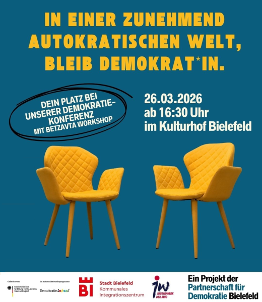 Demokratie nicht nur besprechen, sondern praktisch erfahren – das ist das Ziel der ersten Demokratiekonferenz in Bielefeld. Das Bündnis „Partnerschaft für Demokratie“, initiiert durch das Kommunale Integrationszentrum, lädt am Donnerstag, 26. März, ab 16:30 Uhr in den Kulturhof im Umweltzentrum ein.
