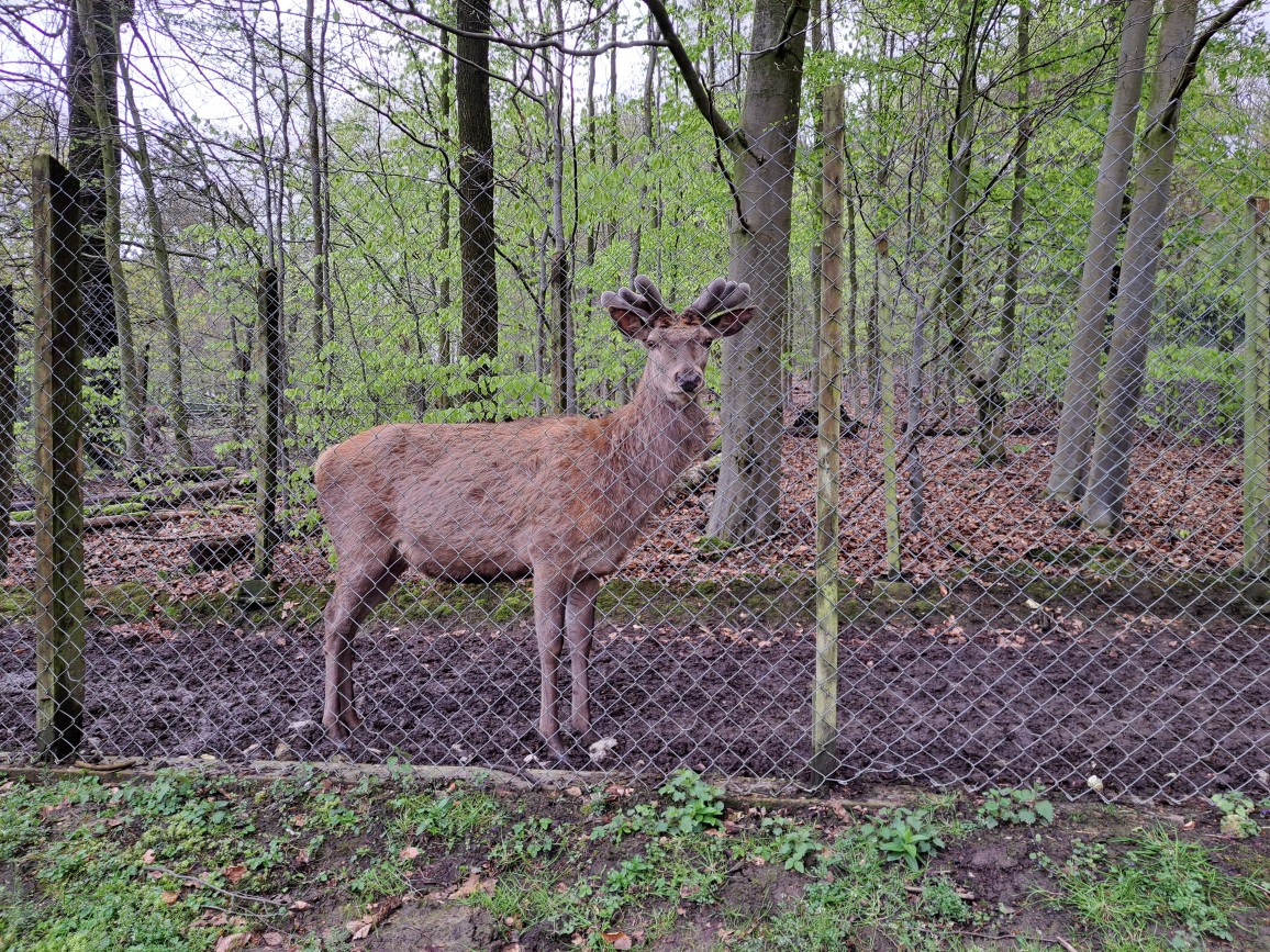 Der Rothirsch „Mike“ konnte am Montag sein Gehege verlassen, während ein Tierpfleger mit dem Traktor zur Fütterung in die Anlage einfuhr. Der Hirsch konnte sich in diesem Moment vorbeidrücken und die Anlage verlassen. Der Hirsch ist im Bast, das heißt, er hat im März sein Geweih abgeworfen, das nun nachwächst. „Dadurch ist er eher schüchtern zu dieser Jahreszeit“, erklärt Ibler.