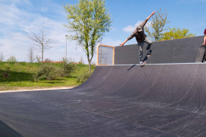 Mit einer Höhe von etwa 1,20 Metern bietet die Rampe insbesondere Skate-Einsteigerinnen und -Einsteigern die Möglichkeit, erste Erfahrungen auf einer Rampe zu sammeln. „Miniramps sind eine kleinere Form der Halfpipe und bestehen aus zwei gegenüberliegenden Rampen mit einer ebenen Fläche dazwischen. Sie ermöglichen es, ohne Anschwung Tricks, Fahrgefühl und Gleichgewicht zu trainieren und sind damit besonders gut für den Einstieg geeignet“, sagt Philip van Schwamen, Gärtnermeister im UWB und zuständig für die Bielefelder Spielplätze.