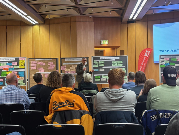 Den Auftakt der Bestands- und Bedarfsanalyse als Basis der zukünftigen Sportentwicklung in Bielefeld bildete eine Veranstaltung für geladene Gäste der Bielefelder Sportvereine und der Sportpolitik am 20. November 2024. Mit dabei: Alexander Budde (h.v.l., Sportamt), Klaus Böhm (Sportamtsleiter), Lutz Thieme, Sören Wallrodt (BeratungsPUNKTsport) und Klara Single (v.v.l.BeratungsPUNKTsport), Sebastian Bunzel (Sportamt) und Udo Witthaus (Dezernent). Foto: Stadt Bielefeld